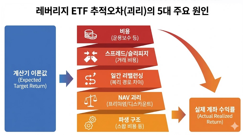2) 레버리지 ETF 괴리의 5대 원인(현장에서 가장 자주 보는 순서)